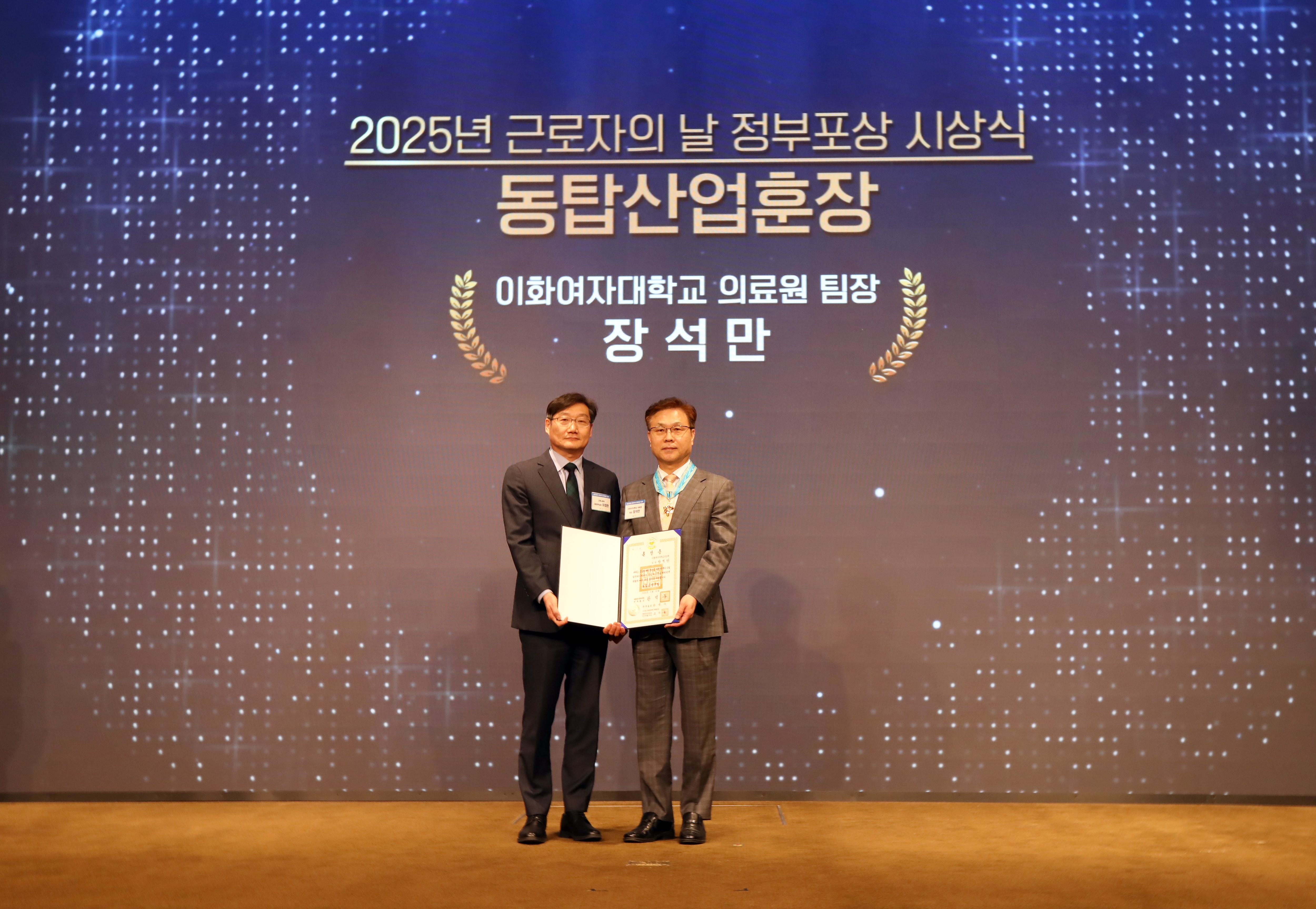 이화여자대학교 의료원(의료원장 유경하) 인사노무팀 장석만 팀장이 지난달 30일 서울 용산구 소재 피스앤파크 컨벤션에서 열린 ‘2025년도 근로자의 날 정부포상 시상식’에서 ‘동탑산업훈장’을 수상했다.