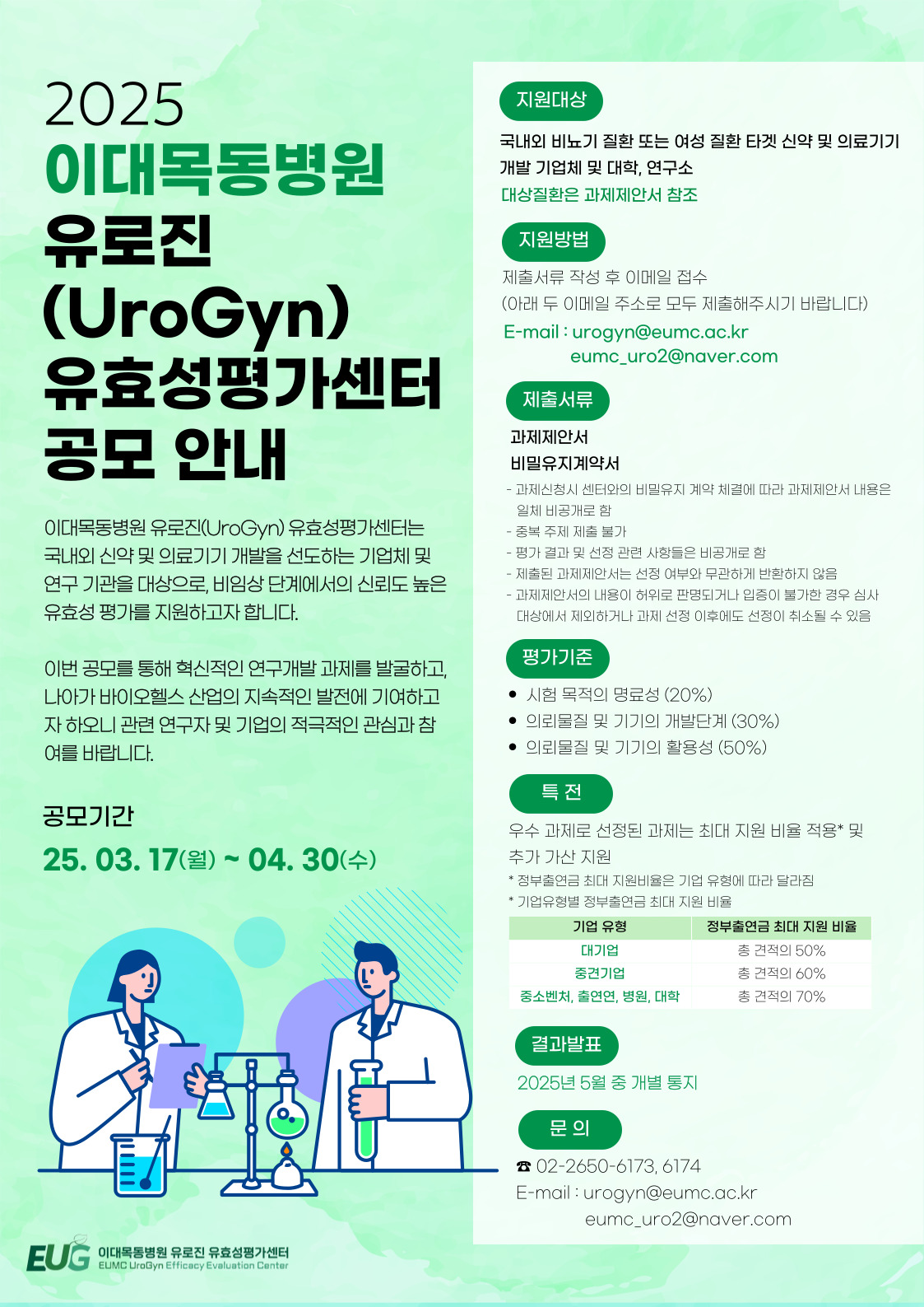 2025년 이대목동병원 유로진(UroGyn) 유효성평가센터 공모 안내 (3/17~4/30 접수)