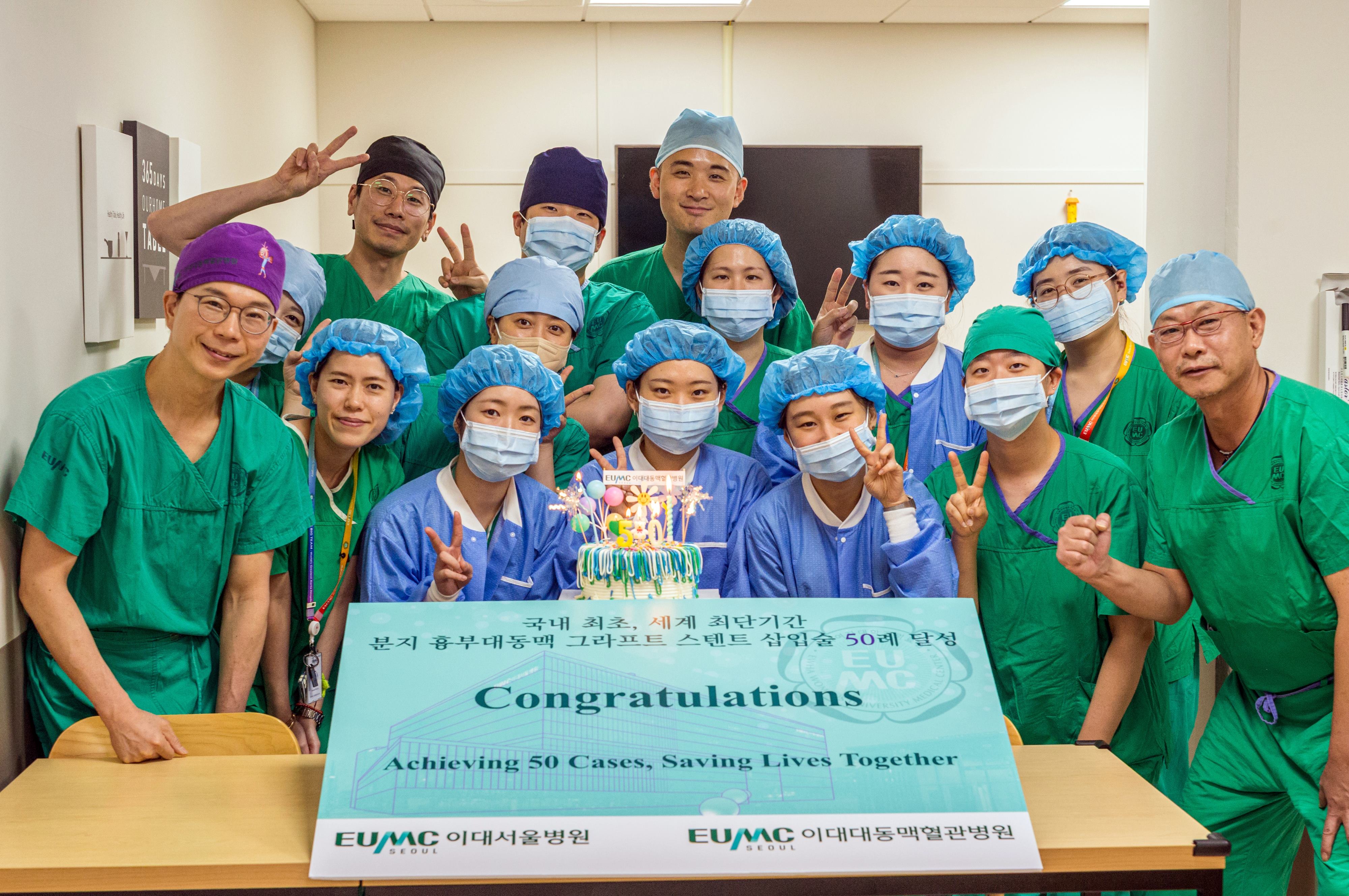 ▲이대대동맥혈관병원, '일체형 흉부대동맥 스텐트 삽입술' 최단기간 50례 달성 기념사진